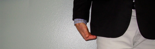 There is an immense amount of debate over how long a sportcoat, blazer, or suit jacket should be. Some say: 100% butt coverage. But if you’ve got a long torso and shorter legs, covering all of your rear might leave you looking unbalanced and stumpy. Another method is to put on the jacket then curl up your fingers as seen below. The goal is to have the tail hit right in that valley of your grip, without it bunching or coming up noticeably short.