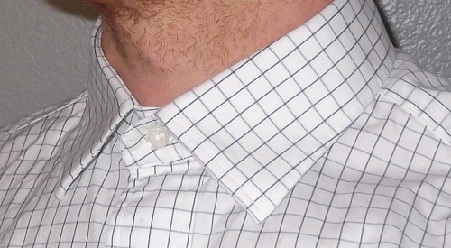 It has to be comfortable but not cavernous when buttoned all the way up. Too small and it gets regulated to only tieless duty (or you’re stuck depending on a collar extender.) Too big and it looks sloppy. You want a collar that gets almost right up to your skin, but doesn’t choke. It’s like a pair of shoes. You’ll know if it’s too loose or too tight.