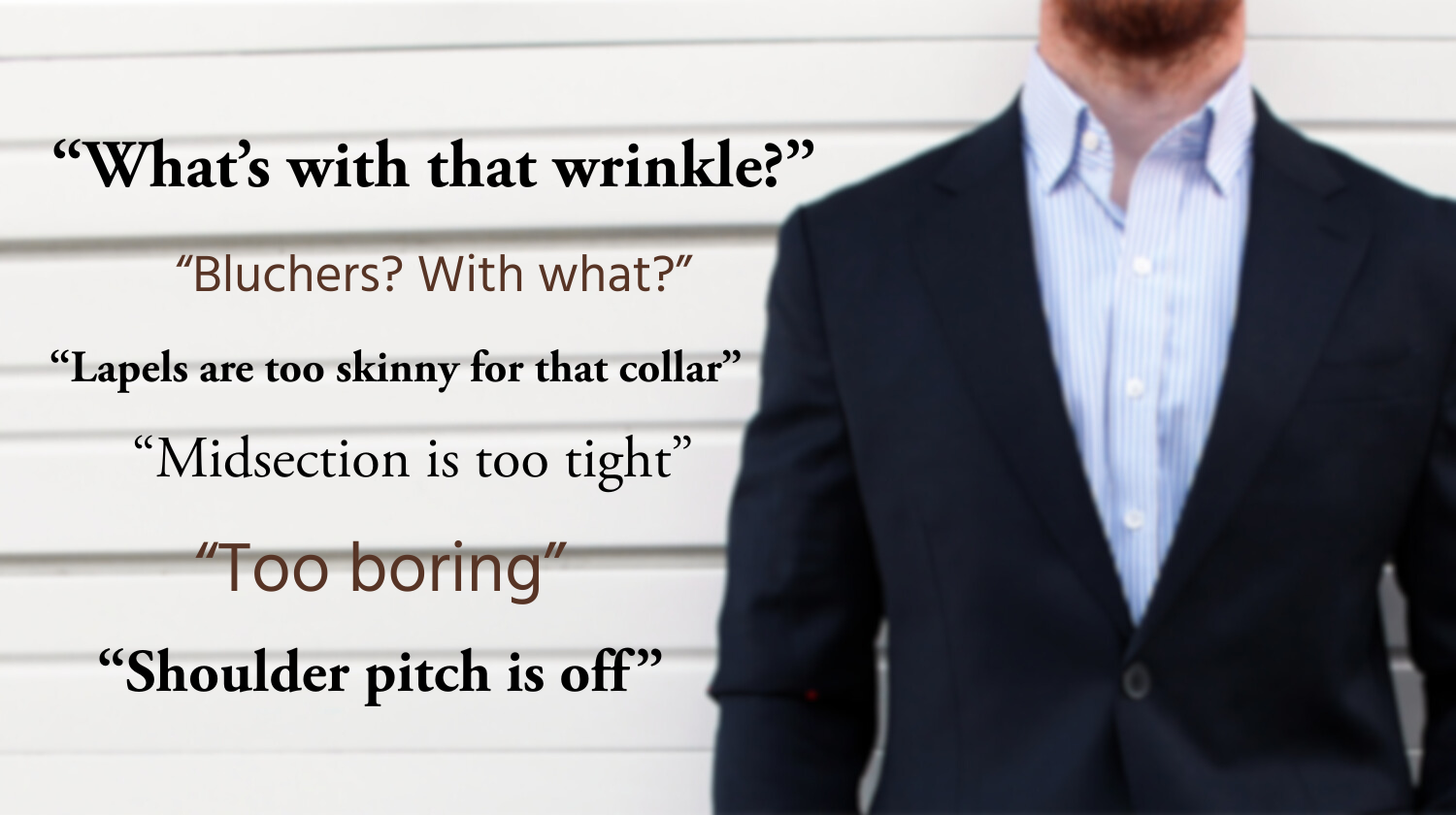 Take wearing a tailored, well cut & constructed off-the-rack suit in the real world. There might be “flaws” the obsessed, fit-critique-crazy Statlers and Waldorfs might pick apart if an image was posted to a forum. But in our real, 3-dimension motion-filled life? No one sees it. You’d be surprised how much others don’t notice about you and your clothes (see an explanation of “The Spotlight Effect” at 5:30 here).
