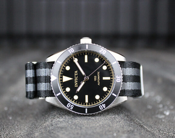 The new(ish) Invicta 1953 Automatic excels because of what it avoids. Unlike its sub-homage brother, there’s no silly engraved INVICTA logo etched into the side of the case. Unlike many other cheap divers, there’s also no glaring polished links (inset or otherwise) on the bracelet. There’s no overcluttered dial with logos fighting against other branding or watch resistance rating. It doesn’t even have a date window or crown guards!