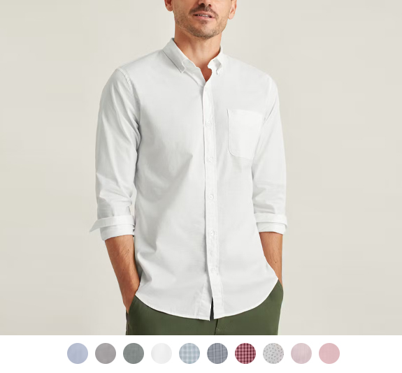 Fall/winter fabric, in button-down form. Six colors. Ships and returns for free as of post time.