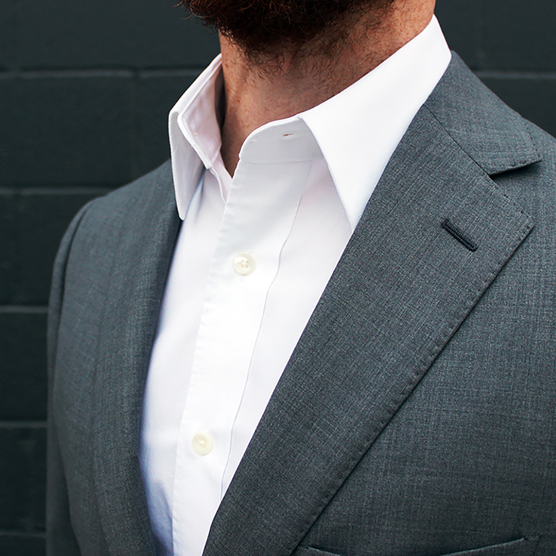 The Shirt: Banana Republic Wrinkle Resistant Dress Shirts in Slim or Standard Fit – $80. Shown here in a size medium slim on 5’10″/180. Good collars on these shirts. Fabric is wrinkle resistant, 100% cotton. A bit of ironing may be needed by most, but it irons up easy and doesn’t come out of the dryer looking like a wreck. The one major drawback (and it’s a dealbreaker for some) is that despite being dress shirts, they’re sold in “alpha” sizes like small, medium, large, etc. Although they do offer a tall template, for our vertically blessed folks out there.