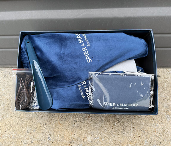 FYI: Spier & Mackay’s footwear return policy is posted here. In essence, you have an initial free return where Spier covers the shipping, while subsequent returns will cost return shipping fees. They have a 30 day return policy for all regularly priced items and items purchased on sale, or discounted have a 14 day return policy from the date of delivery. Note that all shoe returns must be in brand new, resalable condition with no notable creases of the leather or scuffing of the soles. Make sure you also include all of the accessories, or you’re on the hook for them.