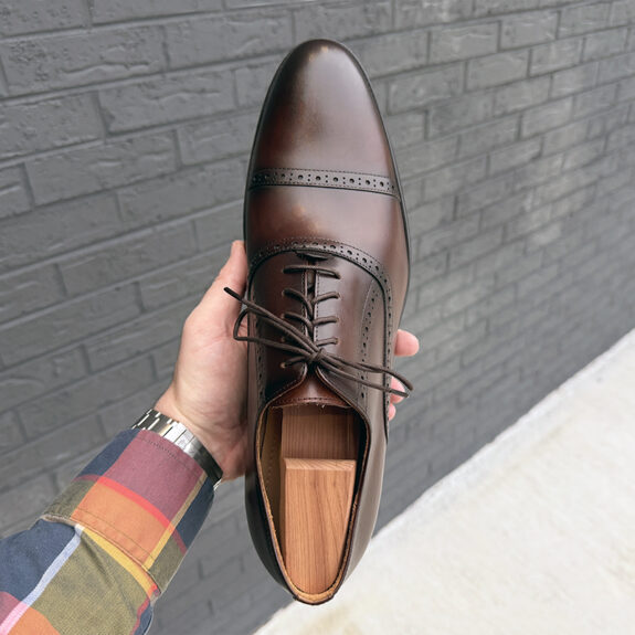 Brogue oxfords represent one of menswear’s most enduring and versatile dress shoe styles, seamlessly bridging the gap between business formal and social formal occasions. The distinctive and decorative perforations that define broguing originated as functional drainage holes in traditional countryside footwear, but have evolved into sophisticated ornamentation that adds a layer of visual interest without sacrificing too much elegance. Cap toe oxfords with brogue detailing offer a slightly more formal alternative to full brogues while maintaining that visual oomph that the perforated detailing provides. In a conventional shade of dark brown leather, these shoes become particularly compelling for the modern gentleman’s wardrobe, offering more versatility than plain black oxfords for daytime business wear, weekend social events, and everything remotely formal in between. When executed well, a quality brogue oxford can serve as the foundation for countless refined looks. With this in mind, I was eager to evaluate Spier & Mackay’s latest take on this menswear essential and see how their brogue cap toe oxfords measure up in terms of design, materials, and an overall value proposition.