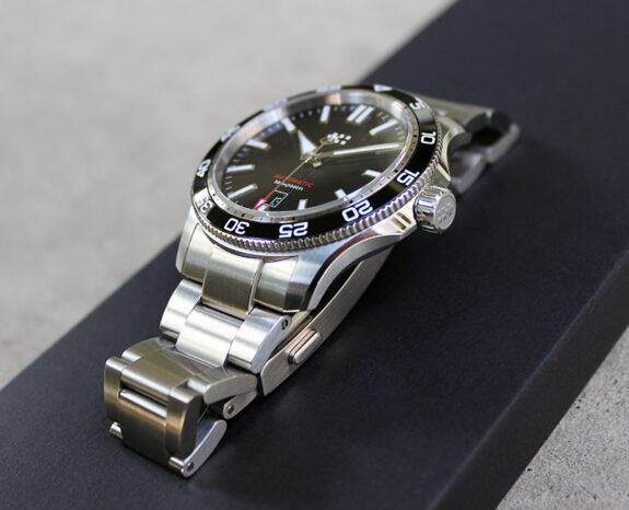 Christopher Ward’s flagship Trident Pro watches are slimmer and more wearable than their bulky competitors, are still Swiss made with Swiss automatic movements, and boast an impressive 300m worth of water resistance. The bracelet is incredible, and the clasp even has an on-the-fly micro adjuster for maximum comfort. Covered by a 60 month movement guarantee. Available in 38mm, 40mm, and 42mm diameters. These ship from the UK, so the extra $200+ (ouch) tariffs and whatnot gets charged at checkout. But at least it’ll get DDP. …No, not that DDP. In terms of international shipping, DDP is an abbreviation for “Delivered Duty Paid.” Which means they do the paperwork and pay up front. So it should show up on time and with no surprise extra costs.