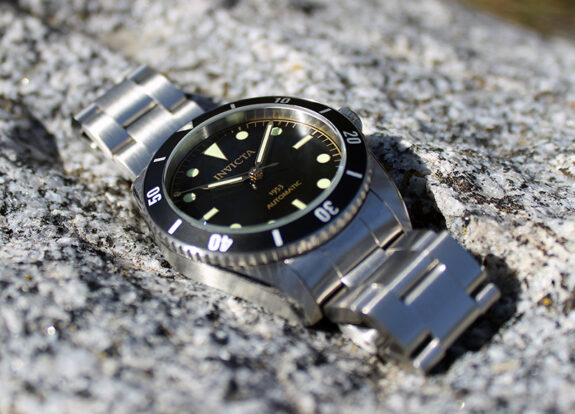 There might not be a better bang-for-the-buck diver on the market. Automatic movement hacks and hand winds. 200m water resistance. 120 click bezel helps keep track of elapsed time. Classic dive-watch looks. Not everyone will like the shined up inserts on the bracelet, but it’s more subtle than many other competitors. Reviewed here.