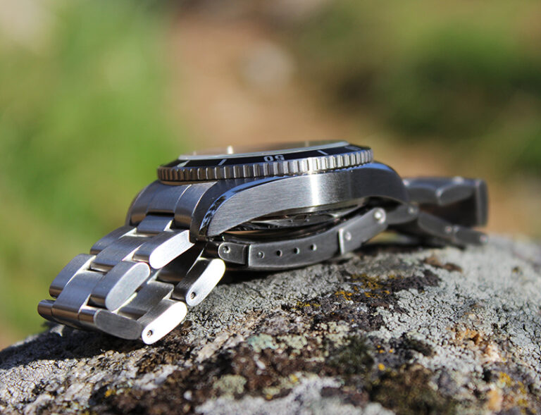 Full review here. The entry-level automatic dive watch standard. 40mm diameter is wearable by the vast majority. Seiko NH35A automatic movement hacks/hand-winds. 200m water resistance, screw down crown, fully brushed bracelet, and an exhibition case-back. And unlike the previous entry-level go-to (Invicta’s Sumariner homage) there’s no tacky logo engraved on the side. (That was a huge compromise with their cheap-sub imitator.) This one looks clean, classy, and is nice and comfortable to wear. Versatile too, as it can be worn with everything from a t-shirt and shorts, to a suit and dress shoes.