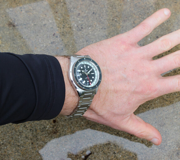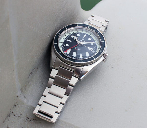 Full review here. Does everything and looks great while it is doing all of those things. GMT function but has the body and bezel of a dive watch. 200m water resistance. Made in Japan Miyota 9075 automatic movement. 41mm diameter, 46mm lug-to-lug, 12.2mm case thickness + 2.4mm dome crystal, 20mm lug width. Has some nice (but not overwhelming) wrist presence. Should be easy to wear by most. And the flat-link bracelet is one of the most comfortable, well machined you’ll find. Especially at this price.