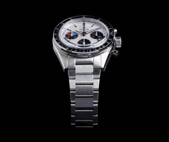 For those that love quick machines and the watches that go with them. Motorsport inspired and plenty fast looking. 39mm case width. 11.7mm case thickness + 2.1mm dome crystal. Seiko Automatic Chronograph movement. Panda dial with a little splash of color.