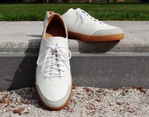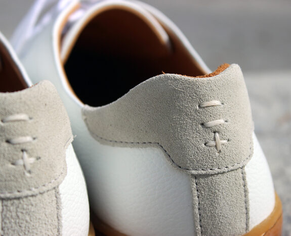 These sneakers are throwbacks. Not just in style, but in the weirdly high quality of materials used. They don’t feel or look like something birthed by spraying magic goo into a highly pressurized mold and subsequently shot out onto a conveyor belt. They’re certainly simple in overall design, but the pebbled leather, suede toe bumper/heel patch, and squishy Lactae Havea natural rubber outsoles all have individual textures which look… real. Like, really real. Because they are real, natural, well-sourced materials.