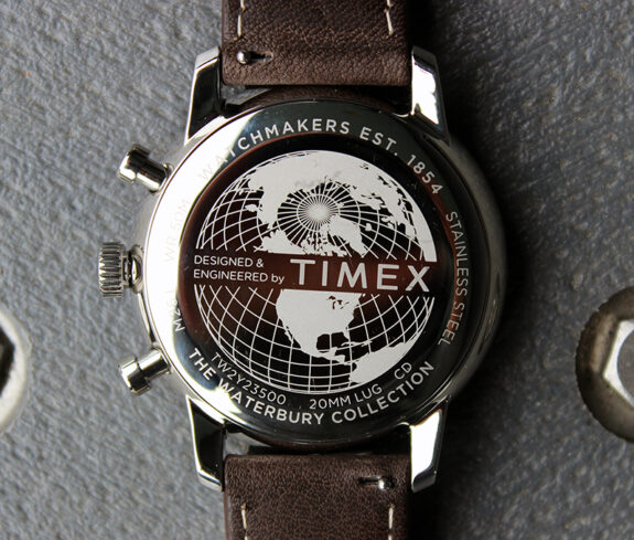 The watch-head then gets attached to a surprisingly soft, very-slightly waxed, aged but not worn out looking leather strap. They even thought to put quick release pins on it, so when you want to quickly change out the brown for black, it’s a breeze to do so. A deployant style buckle is another pleasant upgrade, and while some may not like a deployant as much as the traditional pin + buckle style, those who are used to this sort of thing won’t have any trouble. Also worth noting is that at least on the watch we purchased for review, there’s no sharp/pokey edges to the two-piece (not butterfly) style deployant. That can be a concern with cheaper brands trying this style, but it looks/feels like Timex did well on this one. Overall its super comfortable out of the box. (At least on the 7.5″ wrist wearing it while this review is being typed.)