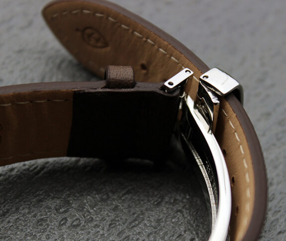 “Deployant” clasp instead of the usual (and cheaper) pin-buckle style.