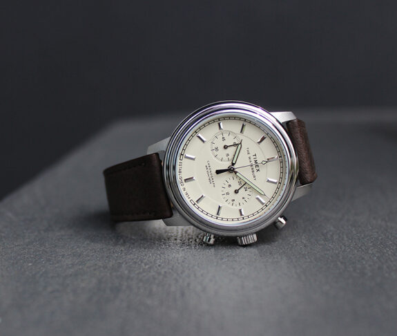 The old advice “don’t over egg the pudding” has been heeded, and the dial is a pleasant light cream color instead of the gooey faux-tina sepia sludge seen on some other retro-inspired watch dials. The Timex is a heritage inspired yet still contemporary looking watch which has been discreet with its use of “yolk” shading. Eggcellent.