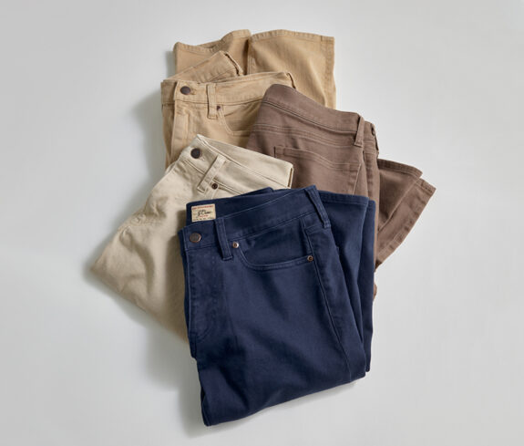 J. Crew’s new revamped 5 pockets. Something that’s in-between classic chinos and jeans. It’s the style of pants a lot of us reach for multiple times a week if not almost every day. 97% cotton/3% elastane.