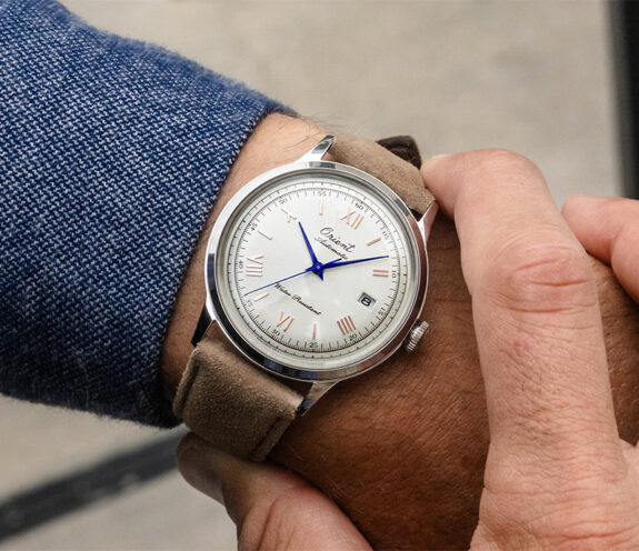 Full review here. Was out of stock for awhile there. Sized down to be on-trend and more acceptable to more wrist sizes, Orient’s second design of their 38.4mm Bambino automatic is a mash-up of the old 40.5mm Bambino Vintage-style + the original 40.5mm Small Seconds. The end result is a watch that looks, frankly, great. The Roman numerals make it look dressy and classic. The blue hands make it quietly pop. The small-seconds dial makes it interesting. And the slightly sized down, 38.4mm diameter should make it wearable by the vast majority. Slap one of the big luxury brand logos on this thing and it could sell for 20x–40x more. Brilliant work by Orient.