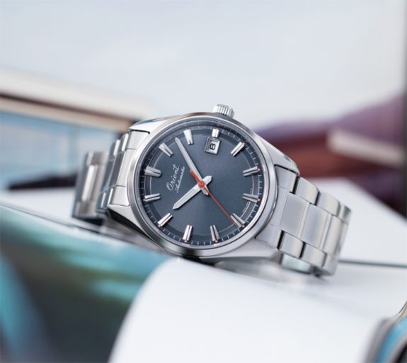 Automatic movement hacks and hand winds. 200m water resistance. 120 click bezel helps keep track of elapsed time. Classic dive-watch looks. Not everyone will like the shined up inserts on the bracelet, but it’s more subtle than many other competitors. Reviewed here.