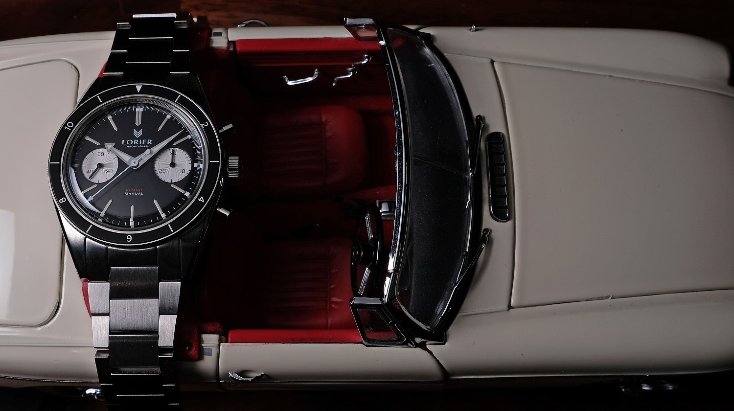 As a kid, I remember riding around in my parents’ old 1960s MGB roadster. It fell into disrepair and sat in the garage for years until I was in high school, when it was resurrected. Let me say, having a fresh driver’s license and access to a vintage British sports car, it is so choice. I was already into watches, then, but could have only dreamed of having something as perfect as the Lorier Gemini chronograph on my wrist while handling the spindly-thin wooden steering wheel, rowing through the gears, and timing how long it took to, well, get my sister to piano lessons… While I can’t go back in time and fix that omission, I can put a Gemini on my wrist now, and have done just that, with their black-dial variant. And holy cow, is it fantastic.