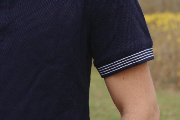 The retro styling, tipped sleeves and collar, the cool pique texture, and the dashing overall feel are great. 55% cotton, 45% poly, and a loose pique weave means it can be a touch roomy. It’s not uncomfortable by any means, some may find the sleeves to not skim as close as they’d like. Lots will be happy with this one, though, and offers a lot of solid value for $15. The fabric here is also on the substantial side, but the pique weave makes it nice and breathable. Size shown above is a small on Ryan, who is 5’9″ / 155.