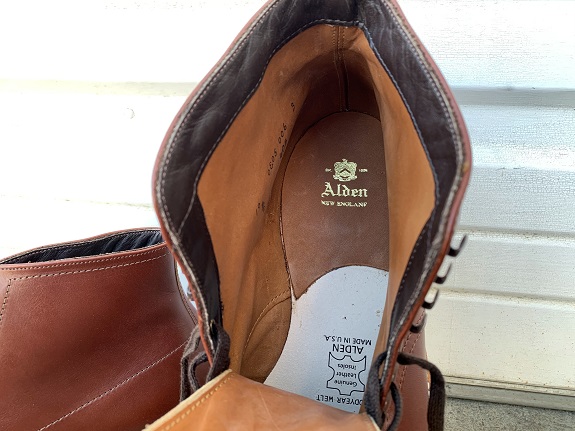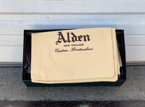 Alden delivers your new shoes or boots in a lovely pine or forest green shoe box made of sturdy cardboard. One edge of the lid is hot stamped with the Alden crest and logo in gold foil, while the bottom half has the model number, size, and width stamped in legible white ink. While this box isn’t decorated as fancy as some of the other brands that I’ve reviewed in the past, they do hold up over time.