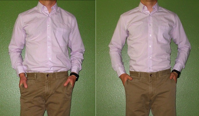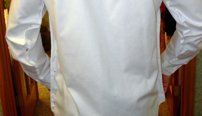 Getting a shirt tailored is like putting a new striped band on a long forgotten watch. This shirt might be ten years old. It was my personal “oh-hell-I-forgot-to-do-laundry” shirt, and if you look at the left picture you can see why I never wore it. It was big enough that it felt uncomfortable. After tailoring, it’s regained a place in regular rotation.