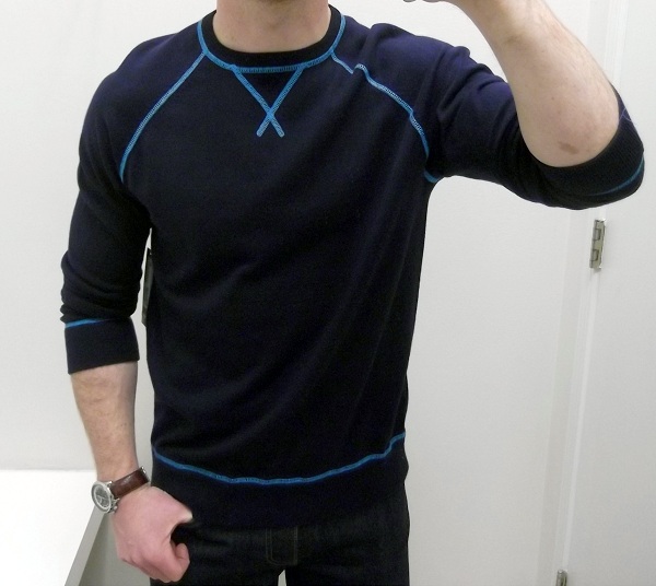 An otherwise great-looking, decently trim, casual sweatshirt-like crew from jcp. 90% cotton & 10% cashmere.