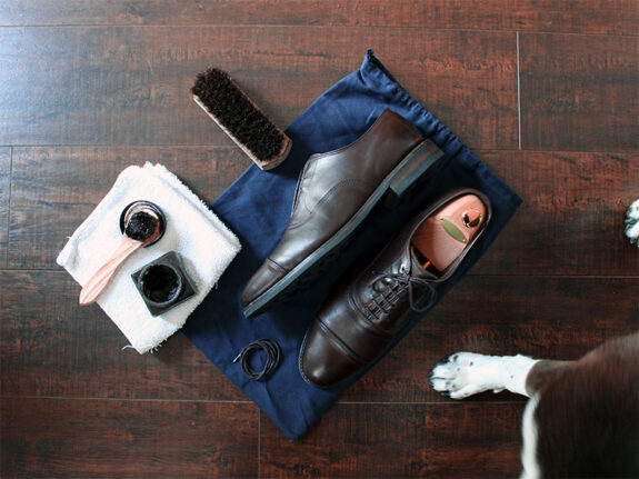 Here at Dappered, we appreciate good footwear and feel that they are the cornerstone of a well-curated outfit. The right pair of shoes can complete your outfit and help elevate it to another level. Whether that’s the perfect pair of dress Oxfords to pair with your expertly tailored suit, or your favorite pair of leather boots to wear with a button-down flannel and well-worn jeans. Either way, choosing the right pair of shoes for the right outfit can help us look better. When we look better, we feel better. After spending a lot of time and effort researching for that perfect pair of shoes, we then invest our hard earned dollarbucks to bring them home. So, it makes perfect sense that we should also be looking after our investments and making sure that they last as long as possible and maximize the value for our money. Proper shoe care can be divided up into five somewhat related categories – protection, cleaning, conditioning, storage, and repair. Let’s dive in and discuss each layer.