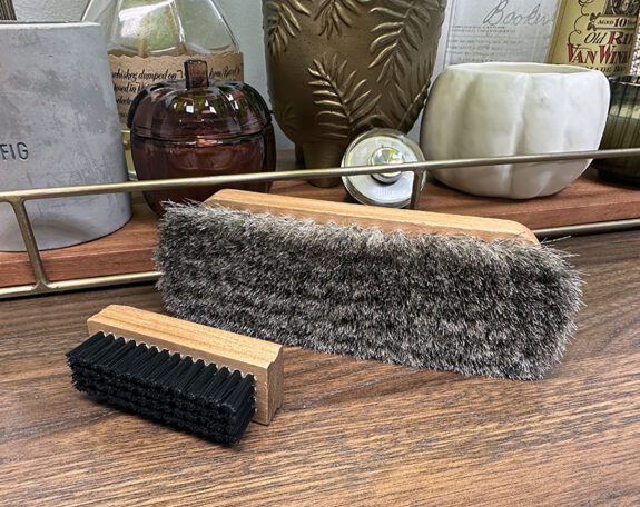 - Horsehair shoe brush by Cobbler’s Choice – $12 (top, the larger brush is a horsehair brush)